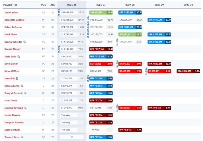 国王签下威少后,球队大名单是16+3:威少、拉文、小萨、德罗赞、蒙克、施罗德、穆雷、卡特、沙里奇、克利福德、尤班克斯、麦克德莫特、琼斯、埃利斯、雷诺、特伦斯-戴维森;史蒂文斯、普罗登、卡德维尔(三个双向)